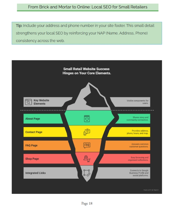Inside, you will find practical Local SEO tips that cover both the technical side and the content side of your store’s online presence. You will learn how to fix the hidden issues that quietly hold local rankings back, how to structure pages so Google understands what you sell and where you sell it, and how to write titles and descriptions that get more clicks instead of getting ignored.